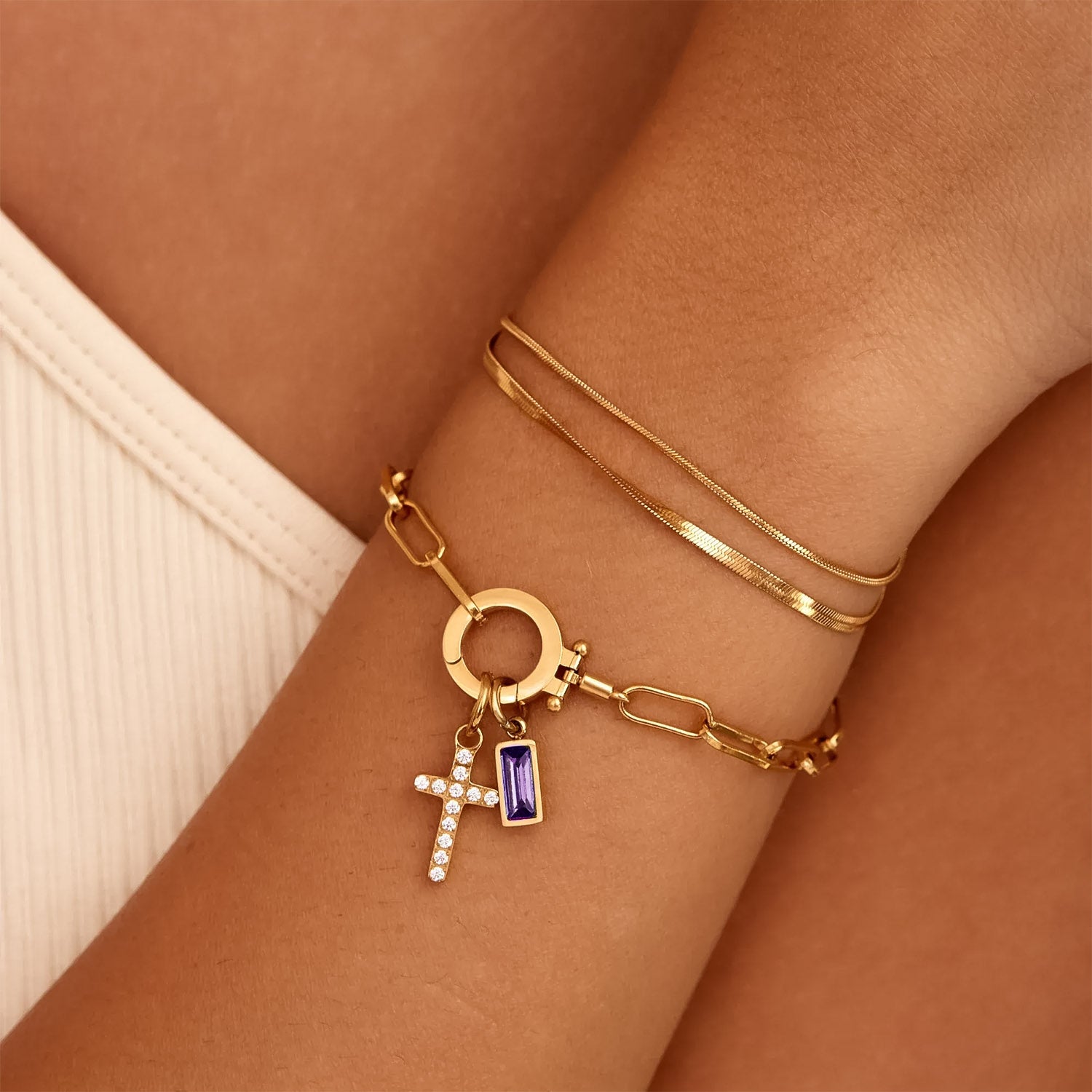 Bracelet Croix du Destin avec Pierre de Naissance