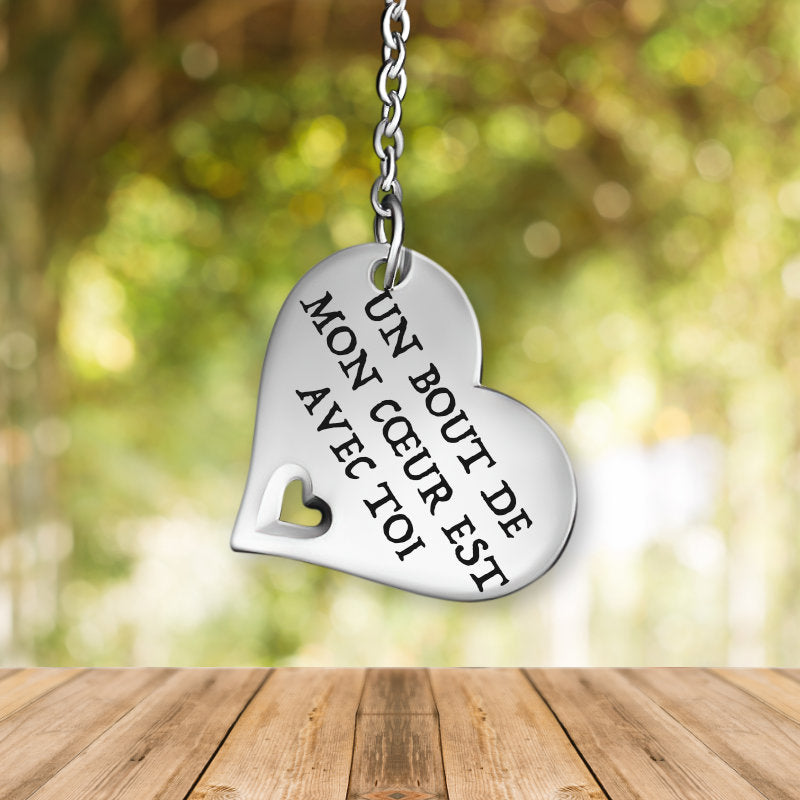 Même quand je ne suis pas près de toi, je veux que tu saches que je t’aime. Porte ce collier autour de ton cou pour te souvenir dans les moments difficiles que tu auras toujours un bout de mon cœur avec toi.